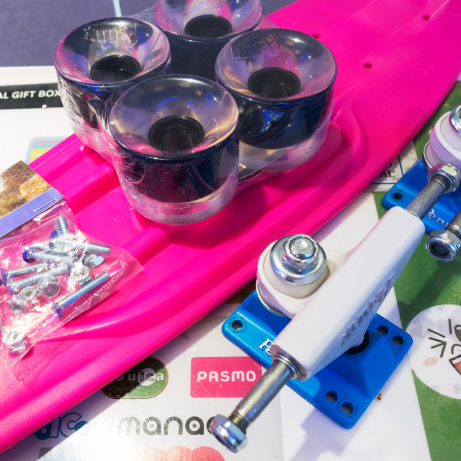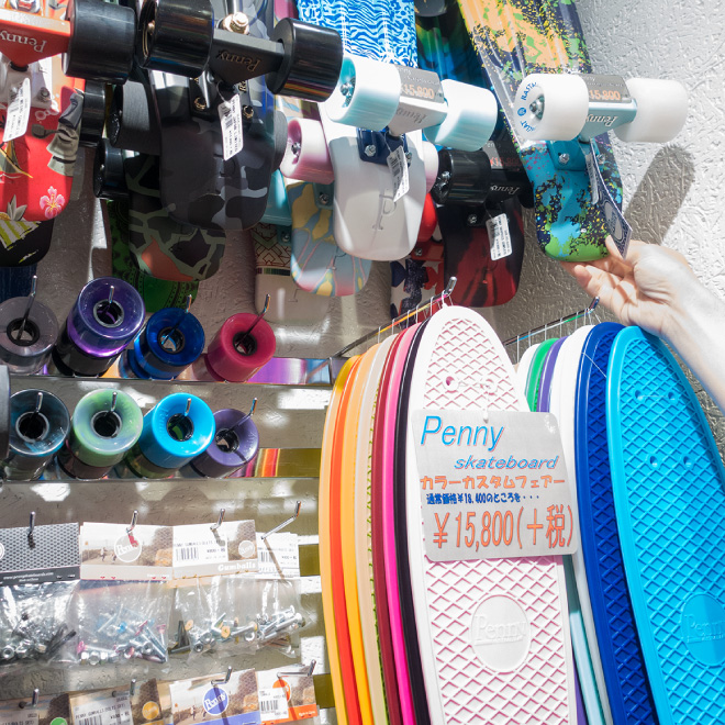 「ちょうど住んでいた自由が丘で自転車撤去が厳しくなったこともあって、スケボーのほうが快適になったっていうのもあるネ。それに、Penny だったらライヴツアー先にも、なんなら海外旅行にも持って行けて、行動範囲が広がるんだョ」