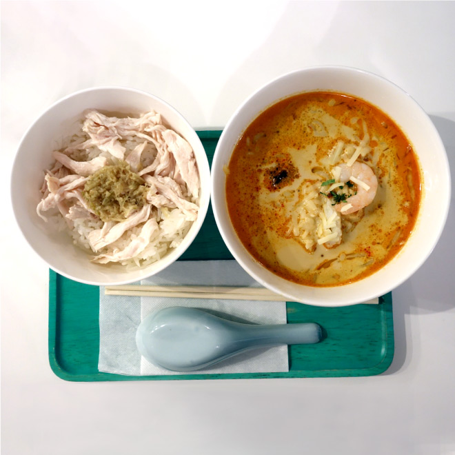 完成したのでさっそく初滑り、と行きたいところですが、「急いては事をし損じるんだョ」ということで、小腹も空いたので、二人で SINGAPORE HOLIC LAKSA へ。リゾート気分でラクサとチキンライスをつつきつつ、せっかくなので、サイダーKがスケボーを始めたきっかけも聞いてみました。