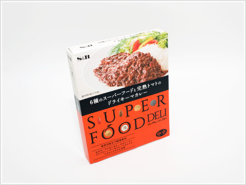 次、3品目は変わりダネで、「S&B SUPER FOOD DELI 6種のスーパーフードと完熟トマトのドライキーマカレー」。